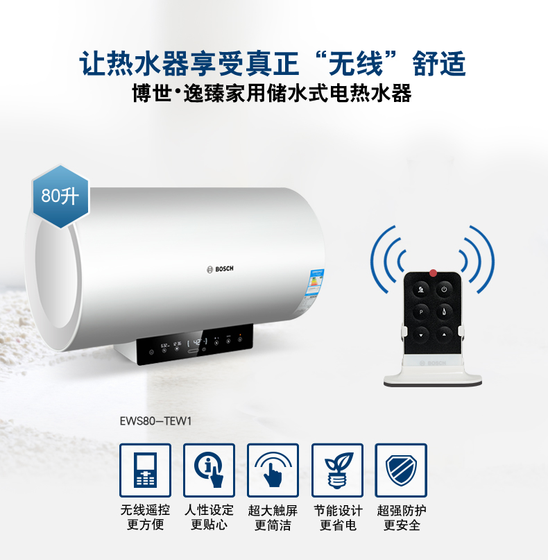 電子式控制,觸摸按鍵。無(wú)線(xiàn)遙控器。可選容積為50L/60L/80L/100L。