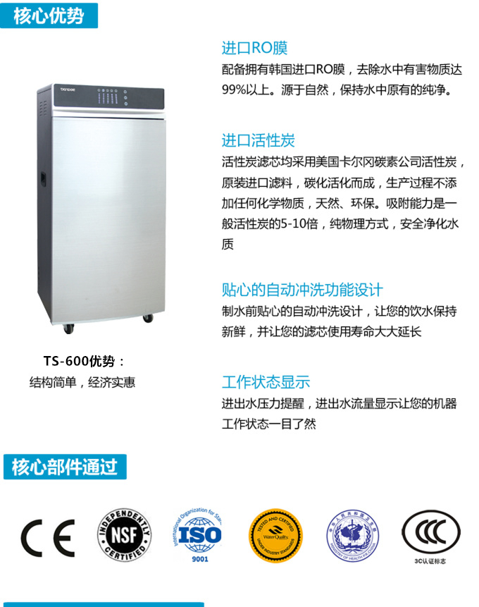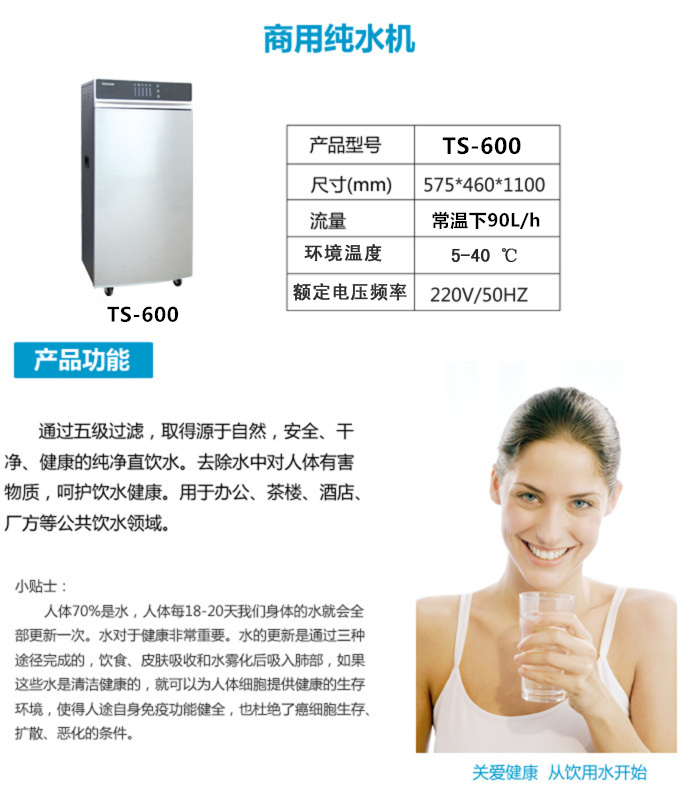 恬凈商用純水機(jī)可用于豪華別墅、辦公室、學(xué)校、茶樓等公共場所,解決公共飲水問題。恬凈商用純水機(jī)能夠去除水中所有有毒氣體及重金屬全部去除,水燒開再也不會結(jié)垢,口感甘甜,綿柔,讓飲用水更健康、更安全、更衛(wèi)生。